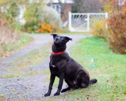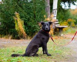 Зовут ее Луна, она небольшая (поменьше среднего), ласковая, игривая. Ей 1 год, уже стерилизована. 20 кг, примерно 45-50 см в холке.