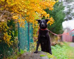 На улице весело носится и играет с другими собаками, не конфликтует ни с кем. По сути еще щенок, восторженный и открытый к общению.