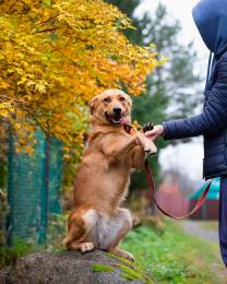 Выгул, поводок - всё знает и умеет. Прекрасно остается дома одна.