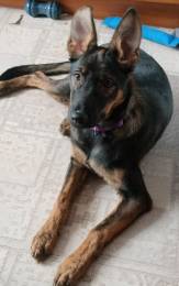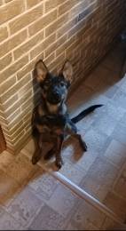 Девочка Маня в возрасте 1 мес. была найдена на улице в дождливый ноябрьский день возле метро Коломенская. Родилась приблизительно в начале октября (по заключению ветеринара). Фенотип овчарки, малинуа.