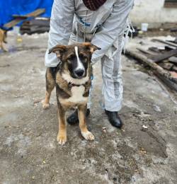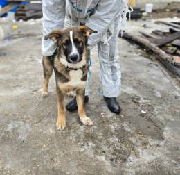 Ищет дом щенок Дунай - ласковый малыш с очаровательной полосочкой на мордочке и немного вьющейся шёрсткой.