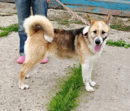 Зирочка хорошо сложена, стройная и подвижная. Имеет интересную трехцветную окраску. В ней есть много от лайки, есть своя "изюминка" - кучерявая шерстка на спинке. Зира метис и поэтому неповторима.