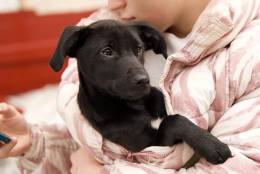 Щенок ищет свою семью.