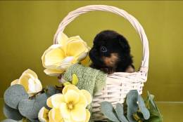 Девочка породы пти брабансон, черно-подпалого окраса.